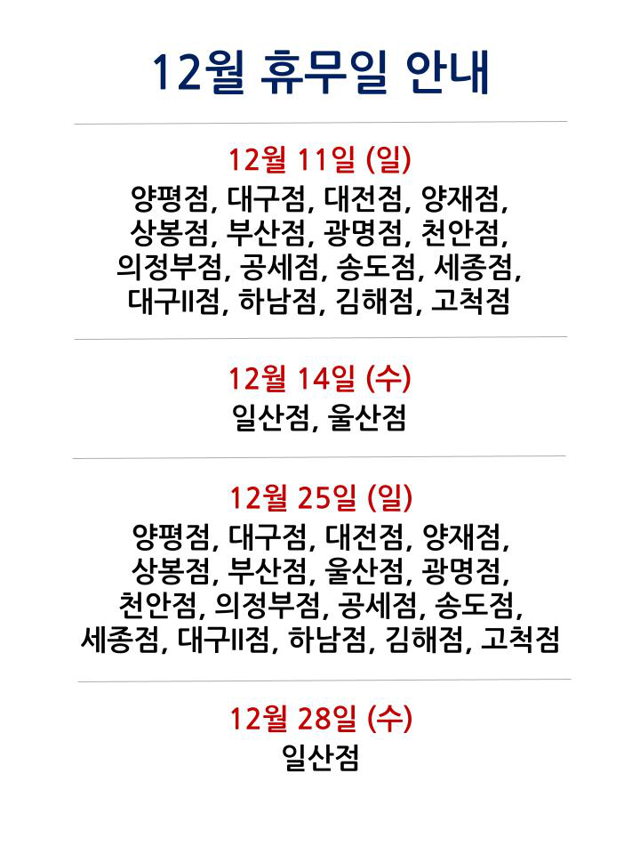 코스트코 12월 휴무일 안내