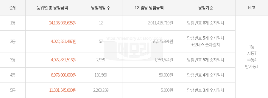 • 총 당첨금액: 24,136,988,628원