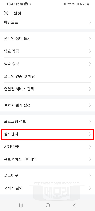 4. 가장 밑 부분에 보면 헬프센터 메뉴가 보입니다. 헬프 센터가 고객센터입니다. 선택해 주세요.