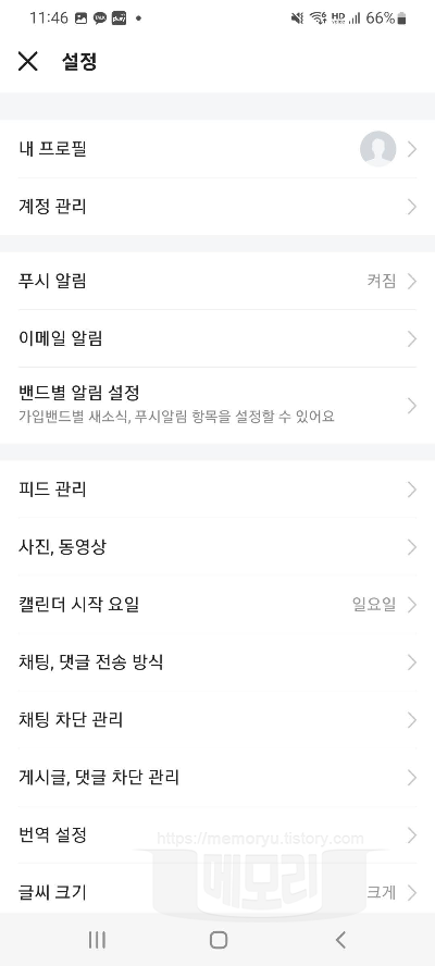 3. 설정 화면에 진입했으면 화면을 아래로 쭉쭉 내려줍니다.