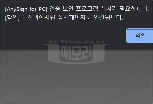 공동인증서로 로그인을 할 때, 위와 같이 보안 프로그램 설치를 필수로 요구하고 있습니다. 보안 프로그램 설치는 불필요한 시간 낭비를 시킬 뿐만 아니라 사용자의 시스템 성능 저하를 야기할 수 있기고 심한 경우 해킹의 우려가 있기에 권장하지 않습니다.