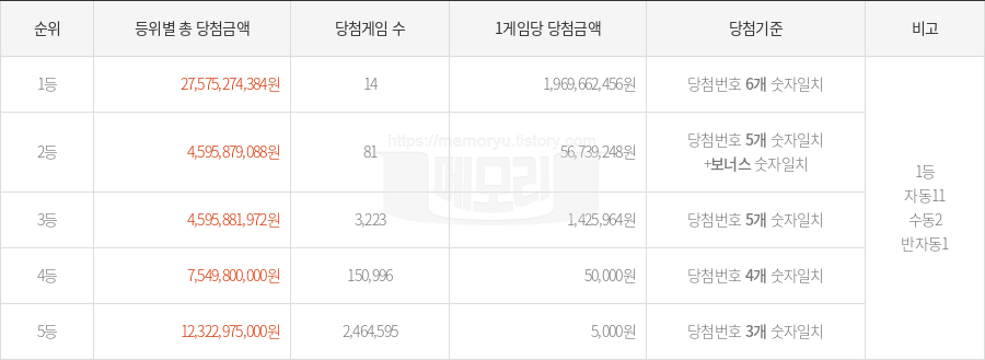 - 총 당첨금액: 27,575,274,384원