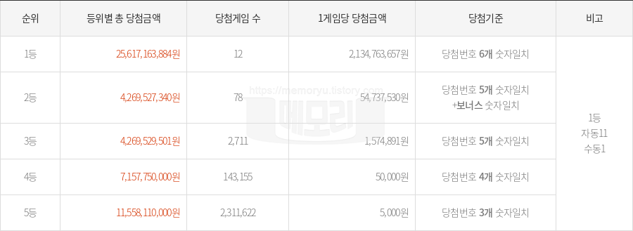 - 1등 당첨 기준: 당첨번호 6개 모두 일치