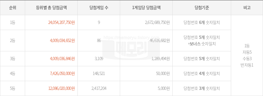 - 3등 당첨 기준: 당첨번호 5개 일치