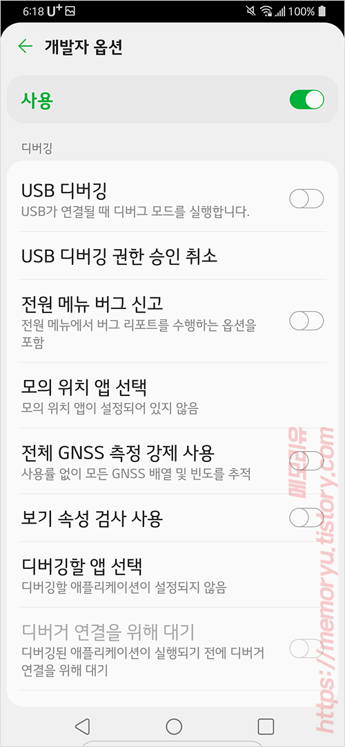 안드로이드 개발자옵션 활성화
