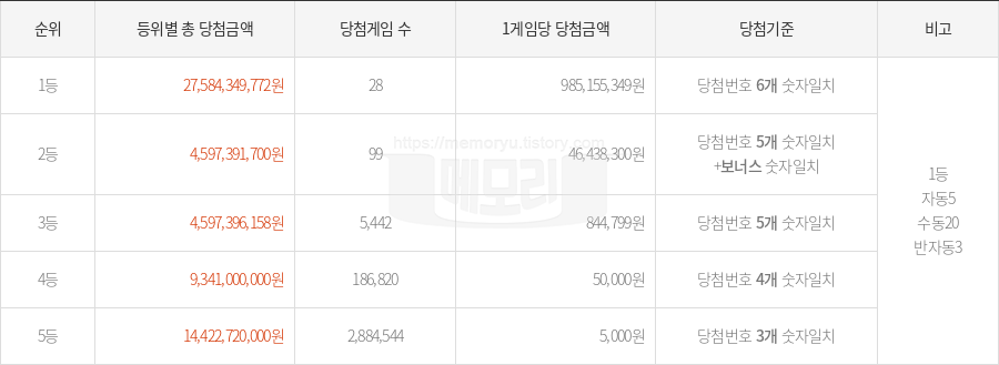 - 당첨 기준: 로또 당첨번호 5개 일치