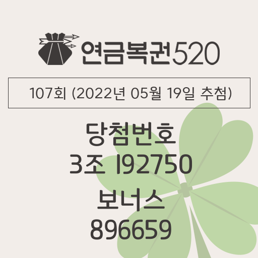수탁사업자 (주)동행복권에서 주관하는 연금복권720+ 107회(2022년 05월 19일 추첨) 당첨 결과가 나왔습니다. 매월 700만 원을 20년 동안 꼬박꼬박 통장에 꽂아 줄 107회 연금복권 1등 당첨번호는 3조 192750입니다. 2등은 조 단위와 상관없이 6자리가 일치하면 2등입니다. 2등과 동일한 당첨 혜택을 주는 보너스 번호는 896659입니다. 1등과 2등, 보너스 당첨자 그리고 3등부터 7등까지 당첨되신 모든 분들 정말 축하합니다. 연금복권은 로또645처럼 당첨금을 한 번에 지급하는 게 아닌 정해진 기간 동안 매달 분할 지급하는 방식입니다. 지급방식이 연금과 흡사해 연금복권이라 부릅니다. 1등은 매월 700만원을 20년간, 2등과 보너스는 매월 100만원을 10년간 지급합니다. 3등 부터는 당첨금이 다소 적기 때문에 일시금으로 지급합니다.