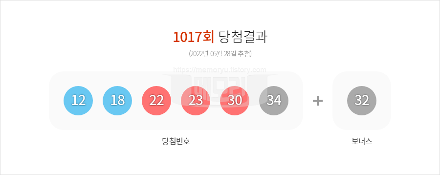 (주)동행복권에서 시행하는 로또 6/45 1017회(2022년 05월 28일 추첨)의 당첨 결과(복권 총 판매액과 등위별 당첨금액, 1등 당첨자 배출 판매점 등)가 나왔습니다. 1017회 로또복권 총 판매액은 101,382,790,000원입니다. 행운의 로또 1등 당첨 번호는 12, 18, 22, 23, 30, 34 입니다. 2등 보너스 번호는 32입니다. 당첨 되신 분들 정말 정말 축하합니다. 당첨금이 3억원을 초과하는 1등의 경우 33%의 세금을 공제하고 당첨금을 지급합니다. 2등과 3등은 보통 3억이 넘지 않기 때문에 22%의 새금이 매겨집니다. 4등과 5등은 당첨금이 5만원 이하 이기에 세금을 부과하지 않고 당첨금을 모두 받을 수 있습니다.