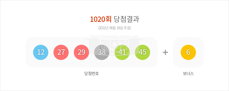 (주)동행복권에서 시행하는 로또 6/45 1020회(2022년 06월 18일 추첨)의 당첨 결과(복권 총 판매액과 등위별 당첨금액, 1등 당첨자 배출 판매점 등)가 나왔습니다. 1020회 로또복권 총 판매액은 104,996,396,000원입니다. 행운의 로또 1등 당첨 번호는 12, 27, 29, 38, 41, 45 입니다. 2등 보너스 번호는 6입니다. 당첨 되신 분들 정말 정말 축하합니다. 당첨금이 3억원을 초과하는 1등의 경우 33%의 세금을 공제하고 당첨금을 지급합니다. 2등과 3등은 보통 3억이 넘지 않기 때문에 22%의 새금이 매겨집니다. 4등과 5등은 당첨금이 5만원 이하 이기에 세금을 부과하지 않고 당첨금을 모두 받을 수 있습니다.