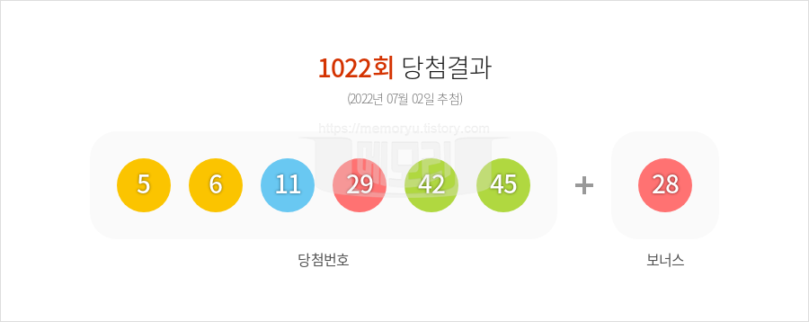 - 로또 1등 당첨번호: 5, 6, 11, 29, 42, 45